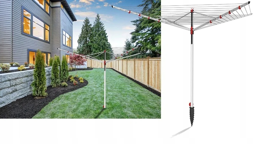 Podmuchy wiatru wprawiają suszarkę ogrodową w ruch obrotowy co sprawia, że pranie schnie szybciej.