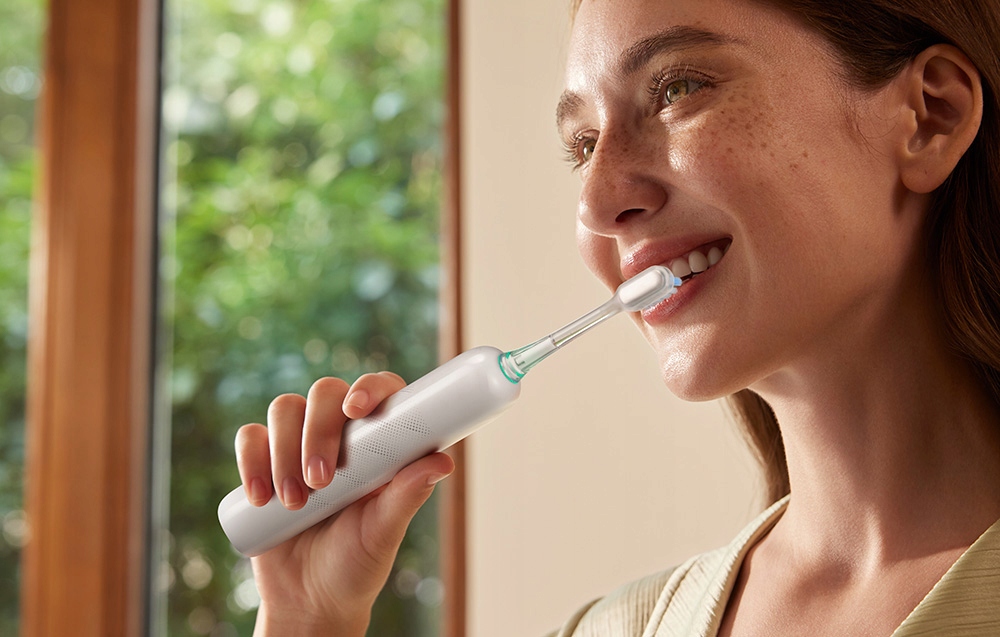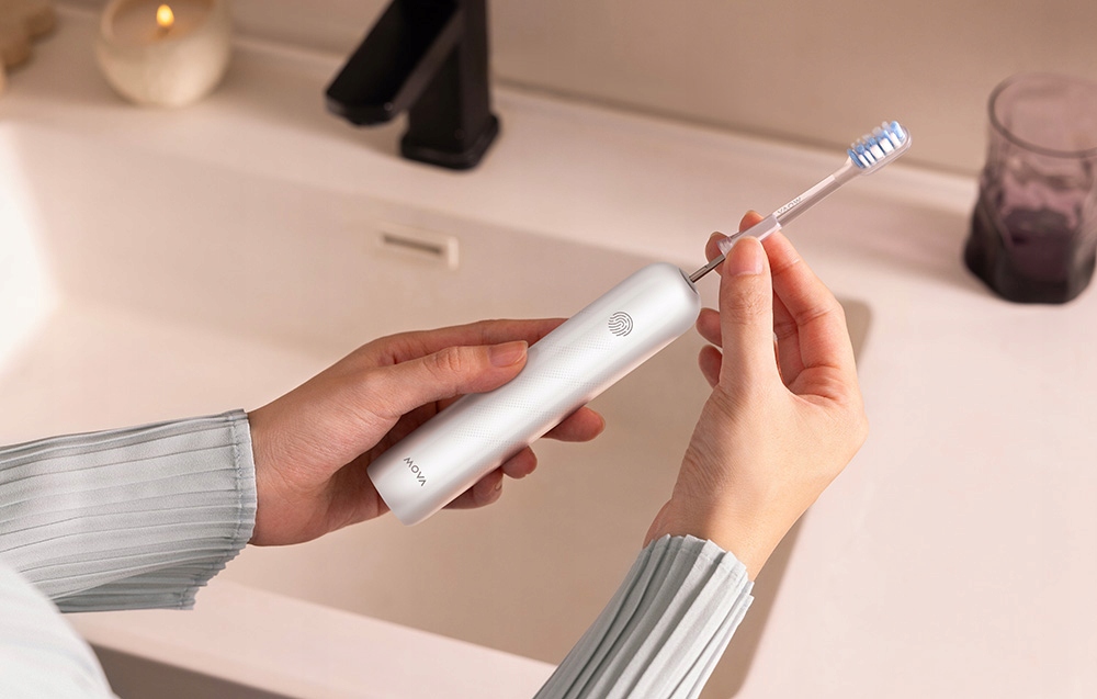 MOVA Fresh nie tylko efektywnie czyści zęby, ale także dba o ich bezpieczeństwo. Wbudowany system wykrywania nacisku chroni szkliwo i dziąsła, a inteligentny pierścień świetlny pozwala dostosować tryb pracy do indywidualnych potrzeb. Dzięki specjalnemu trybowi ochrony przed przypadkowym dotykiem unikniesz niechcianego uruchomienia szczoteczki, np. w podróży.