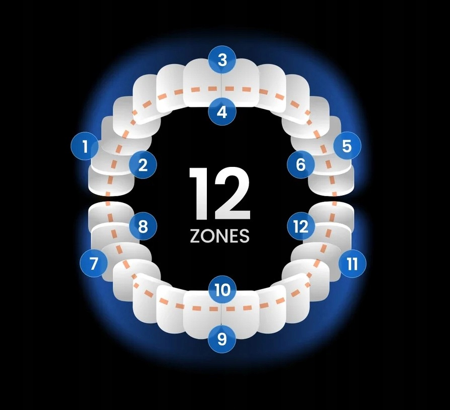 Szczoteczka Oclean X Pro 20 dokładnie śledzi 12 obszarów szczotkowania w czasie rzeczywistym, za pomocą 6-osiowego czujnika żyroskopowego i opracowanego przez Oclean algorytmu AI Aurora. Zwiększa to prawdopodobieństwo, że żaden obszar szczęki nie zostanie pominięty.