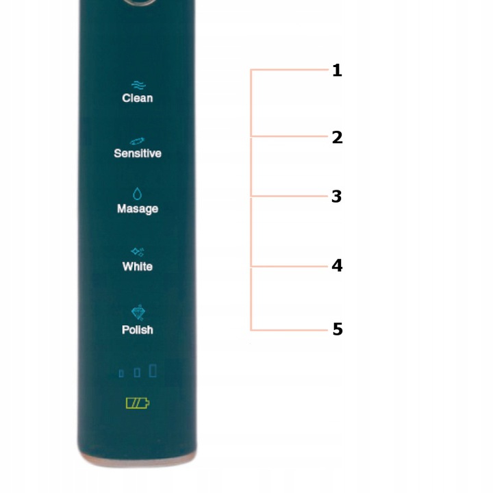 - Tryby pracy:codzienne czyszczenie|delikatne czyszczenie|masaż|polerowanie|wybielanie