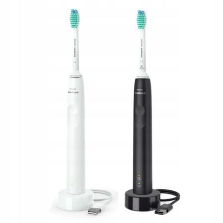 Zestaw dwóch szczoteczek do zębów Sonicare HX 3651/13 i HX 3671/14 w kolorach białym i czarnym.