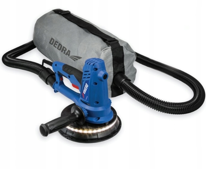 Szlifierka DED7764 przeznaczona jest do szlifowania ścian i sufitów z płyt gipsowo kartonowych pokrytych gładzią gipsową. Wyposażona jest w podświetlenie LED 360° wokół tarczy ściernej, dzięki czemu nie ma potrzeby używania dodatkowych halogenów podświetlających ścianę. Zastosowanie odpowiedniej ziarnistości papieru ściernego umożliwia także usuwanie farb lub klejów z tynków i powierzchni metalowych.