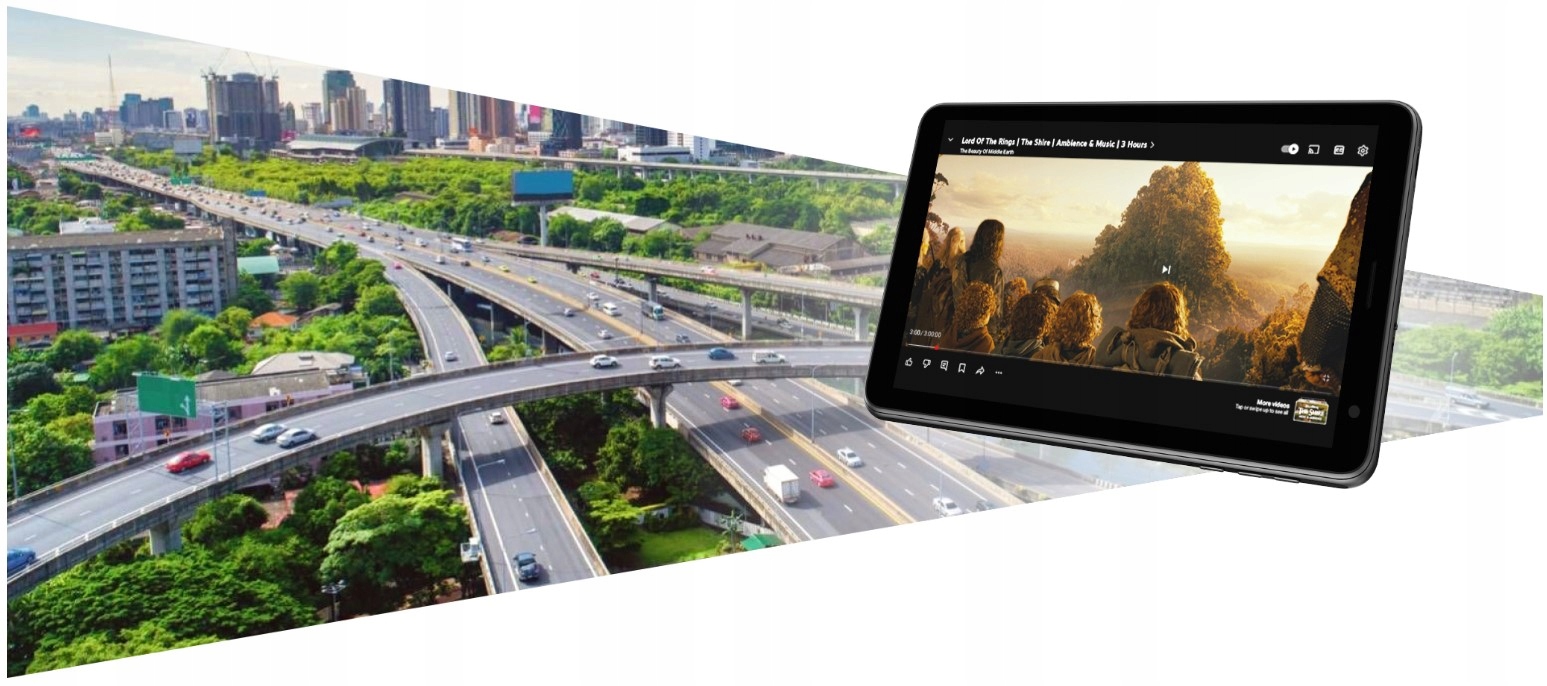 Wygodę użytkowania zapewnia 7-calowy wyświetlacz o rozdzielczości 1024x600. Panel IPS sprawia, że ekran pozostaje czytelny pod każdym kątem, co pozwala na wygodne umiejscowienie tabletu w dowolnej odległości od kierownicy. NAVITEL T797 4G obsługuje najpopularniejsze formaty audio i wideo, dzięki czemu sprawdzi się nie tylko w trasie, ale również w domu.
