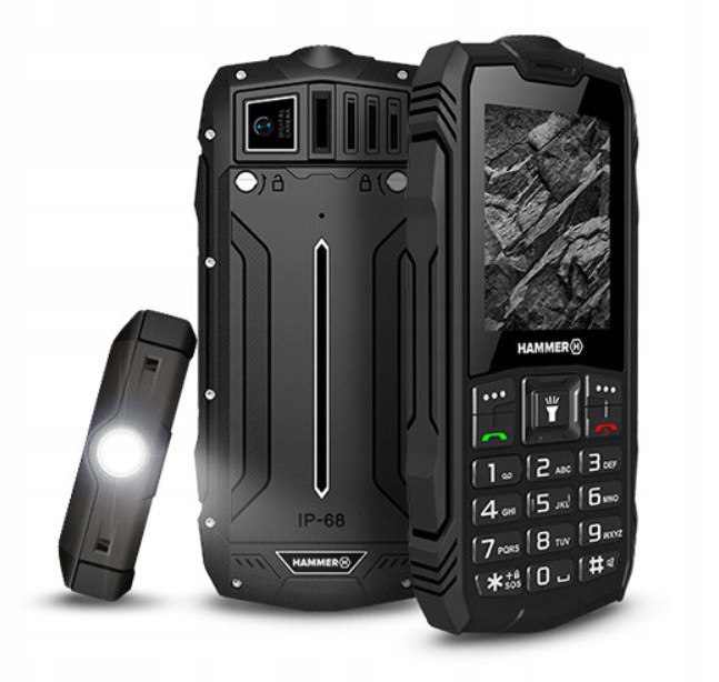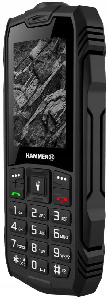 HAMMER Rock ma zwartą, mocną konstrukcję. Jest jak skała, a duży ekran 2,4” zapewnia odpowiednią czytelność i dobrej jakości. Jednocześnie jest poręczny i mieści się dobrze w każdej kieszeni.