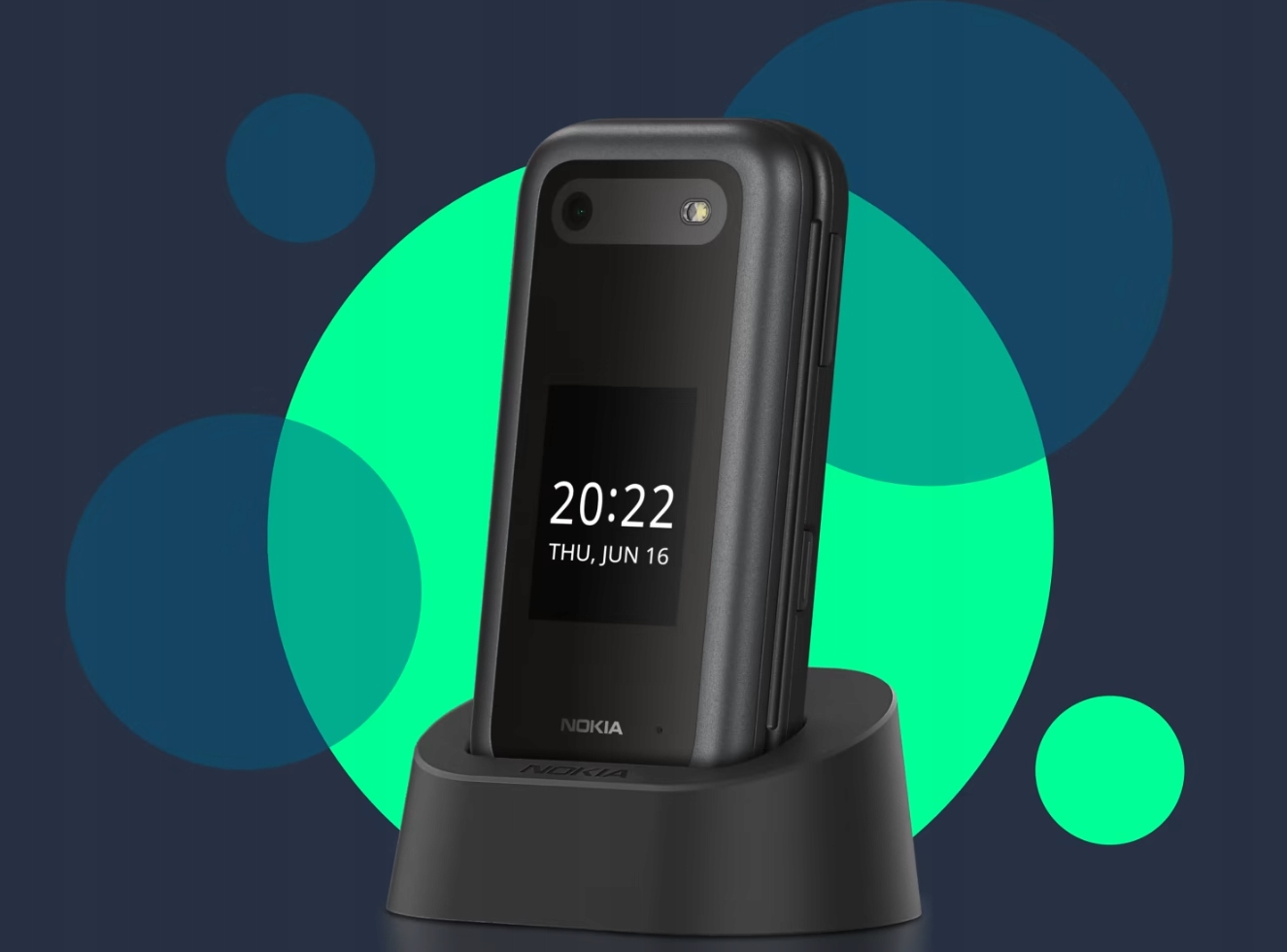 Telefon Nokia 2660 Flip jest zgodny z podstawką ładującą, dzięki czemu możesz go przechowywać i ładować w jednym wygodnym miejscu.