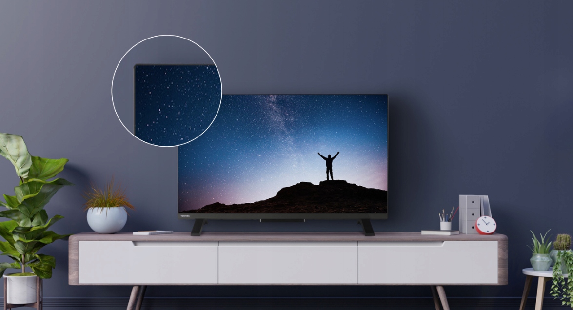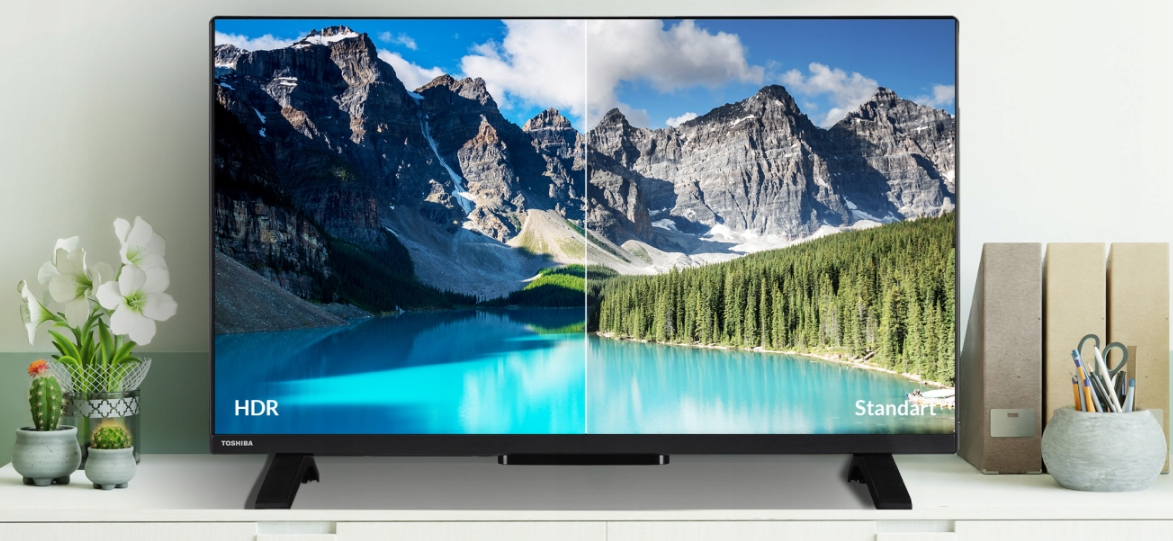 Ten niewielki telewizor o przekątnej 32” jest wyposażony w ekran o rozdzielczości Full HD, dzięki czemu zapewnia wysoki poziom szczegółowości i jakości obrazu. Dodatkowo HDR10 umożliwia wyświetlanie barw o wyjątkowej realistyczności i intensywności. Technologia ta wykorzystuje metadane, które zawierają informacje o odpowiednich kolorach, kontraście i jasności obrazu dla różnych treści multimedialnych, co pozwala na oglądanie ulubionych programów i seriali w doskonałej jakości obrazu.