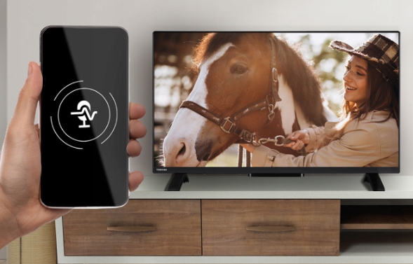 Bezramkowy, czarny design telewizora nadaje mu estetyczny wygląd i sprawia, że wpasowuje się on idealnie w każdą przestrzeń.