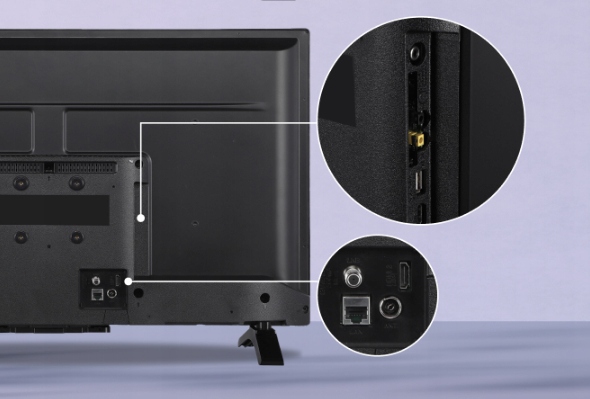 - Złącza: Common Interface|cyfrowe wyjście koaksjalne|D-Sub (VGA)|HDMI|RJ-45|USB|wyjście słuchawkowe