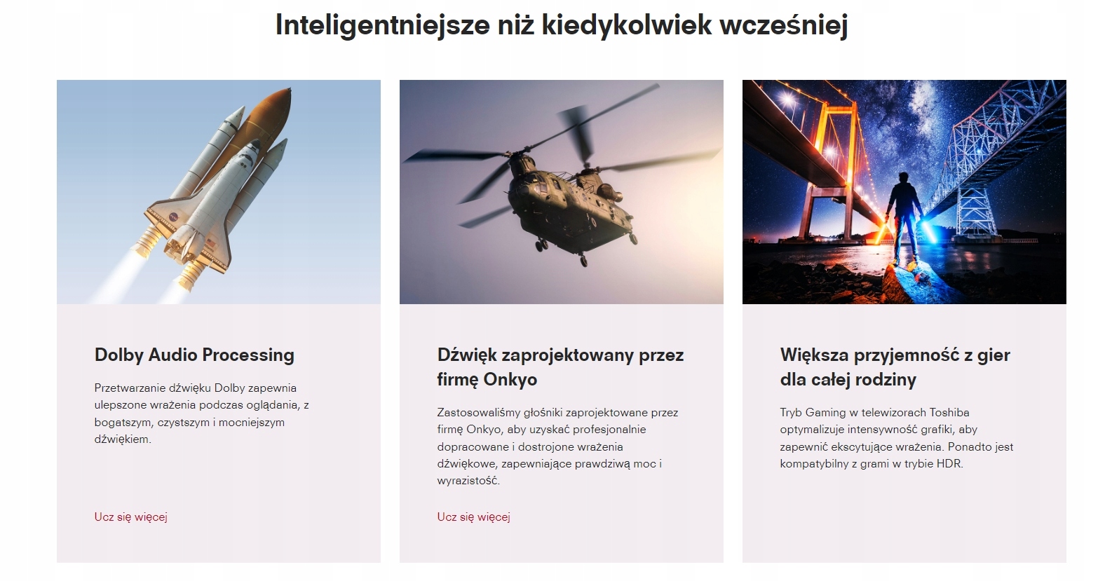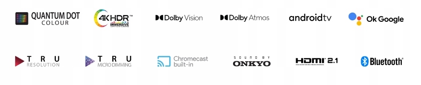 - Dodatkowe opcje dźwięku: Dolby AC4, Dolby Atmos, Dolby Audio, HDMI eARC, Sound by Onkyo