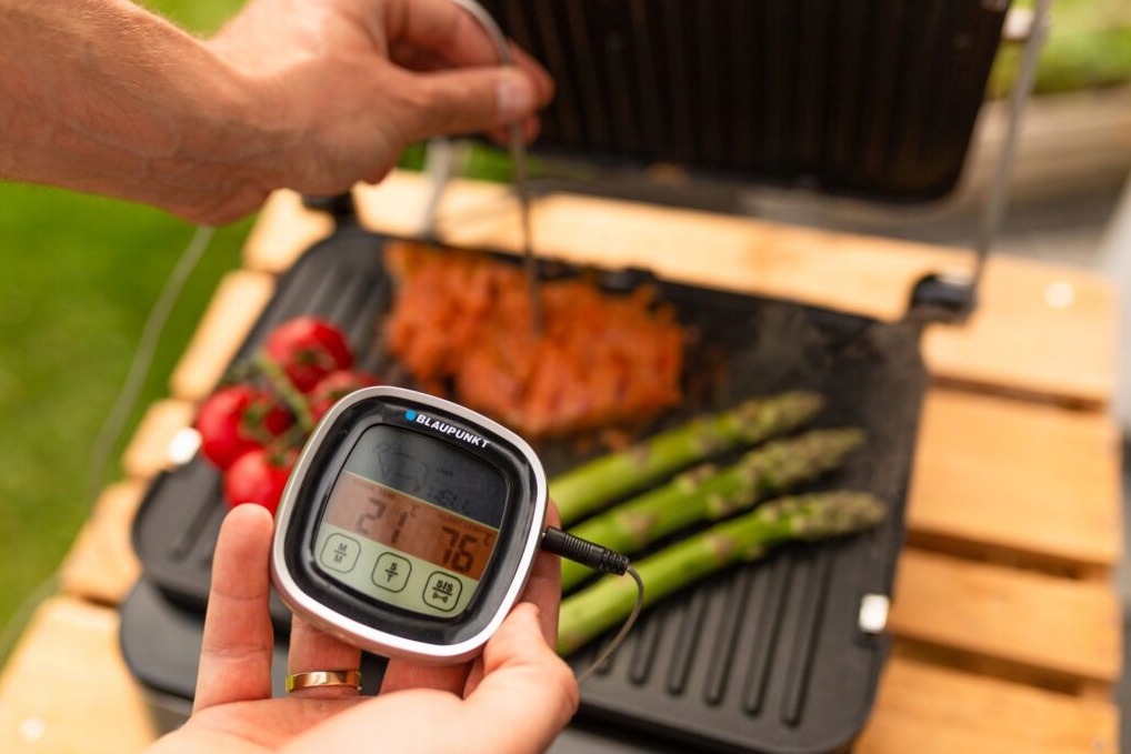 Dobrze przygotowana pieczeń, idealnie wysmażony stek, soczysta karkówka lub puszysty sernik bez zakalca to czasem nie lada wyzwanie dla osoby gotującej te dania. Pomocnym w przygotowaniu soczystego mięsa jest termometr cyfrowy FTM501 marki Blaupunkt.