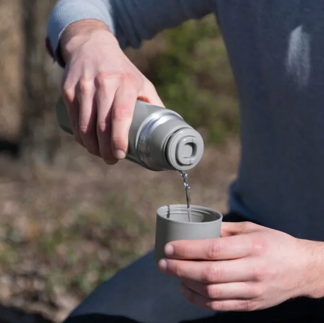 Bez względu na to, czy nosisz przy sobie mrożoną herbatę, czy gorącą kawę, dwuścienna konstrukcja utrzymuje napój gorący lub zimny i pozostawia termos chłodny w dotyku.