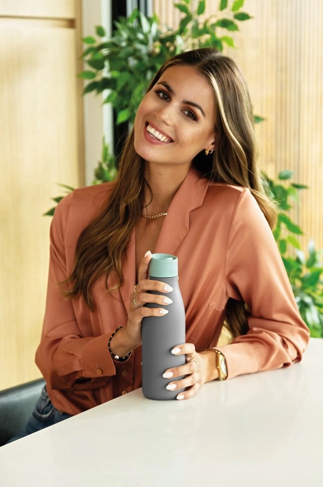 - Butelka termiczna, która utrzymuje ciepło lub zimno napoju do 12 godzin