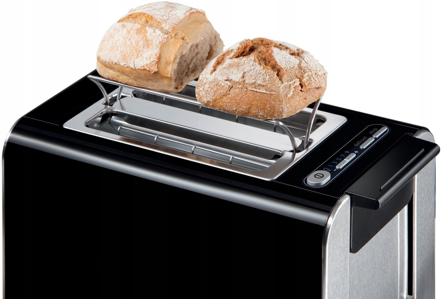 - Funkcje: centrowanie pieczywa|podgrzewanie pieczywa|przerwanie opiekania|rozmrażanie pieczywa