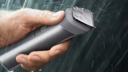Ten trymer jest wodoodporny, dzięki czemu można z niego korzystać pod prysznicem i myć go pod bieżącą wodą.