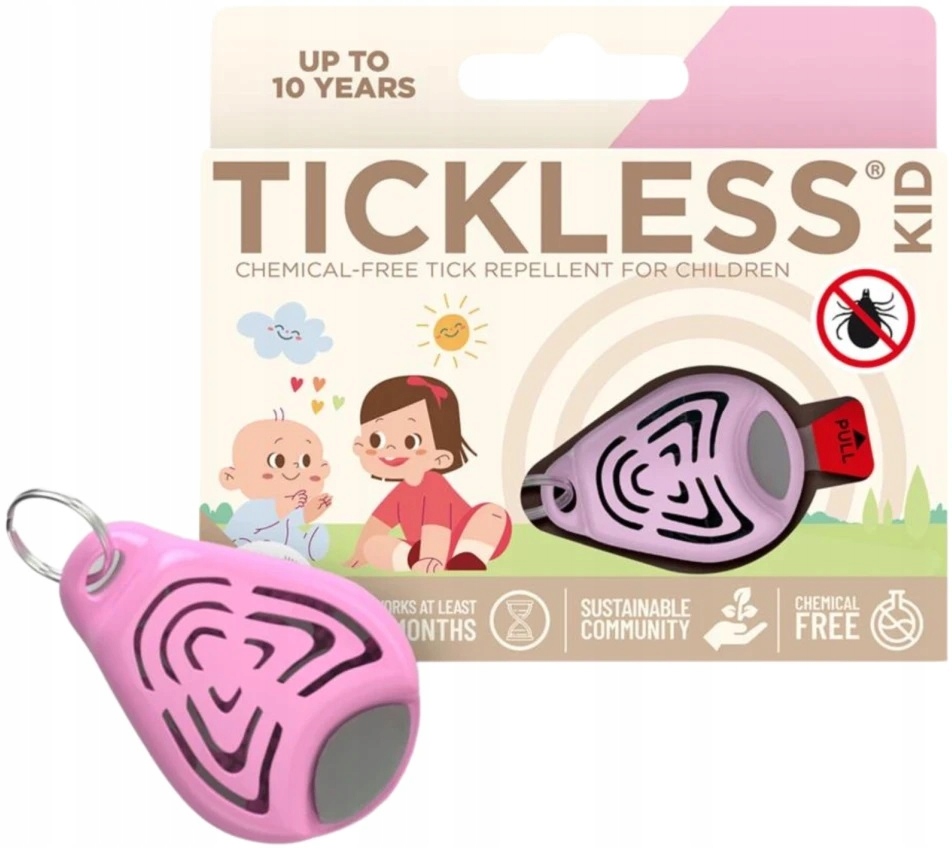Tickless to urządzenie chroniące przed kleszczami, przeznaczone dla dzieci. Działa poprzez emisję ultradźwięków o częstotliwości 40 kHz, które blokują narząd zmysłowy kleszczy. Tickless pozostaje aktywne przez co najmniej 6 miesięcy.
