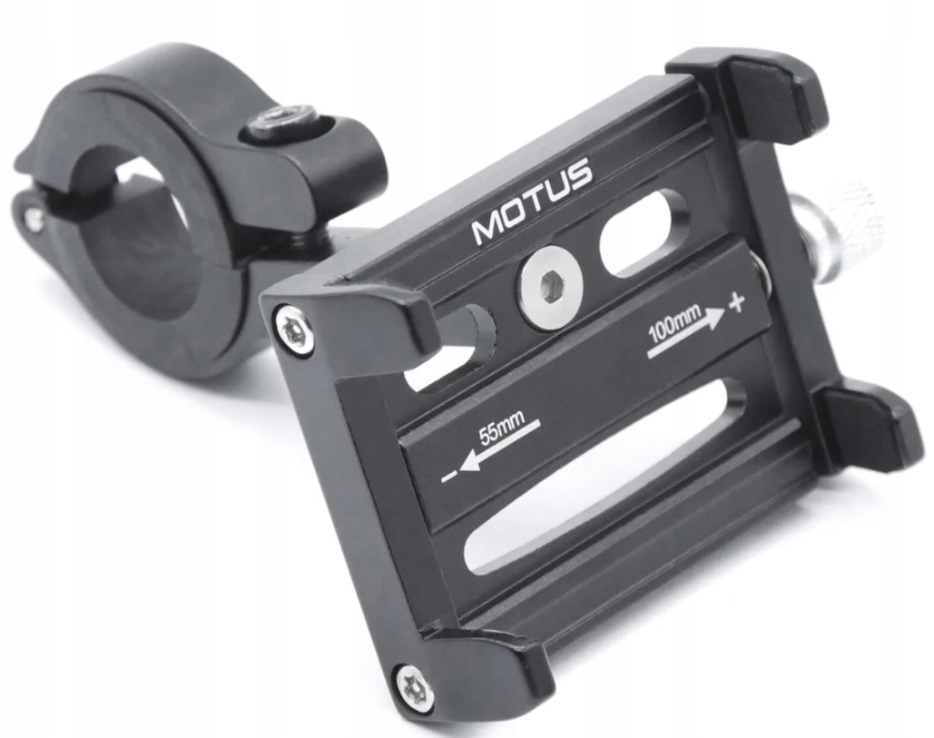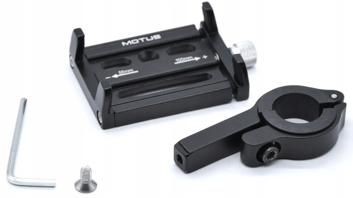 Uniwersalny uchwyt aluminiowy MOTUS na kierownicę roweru/hulajnogi pasuje do większości modeli telefonów o szerokości 5,5 - 10 cm