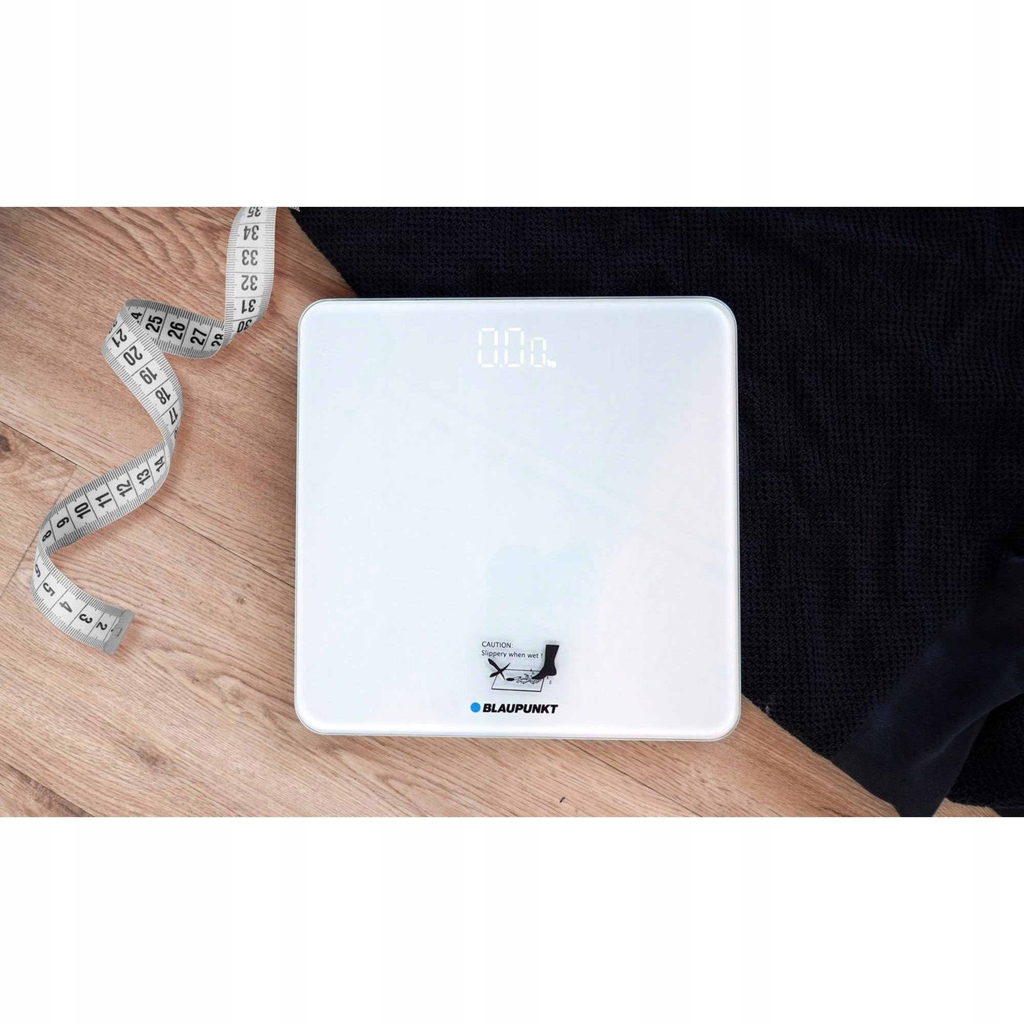 Nowoczesna waga personalna Blaupunkt BSP202 to eleganckie urządzenie z wytrzymałą szklaną platformą, zaprojektowane z myślą o precyzyjnym pomiarze masy ciała. Minimalistyczny design w kolorze białym z dyskretnym logo Blaupunkt doskonale komponuje się z każdą łazienką.