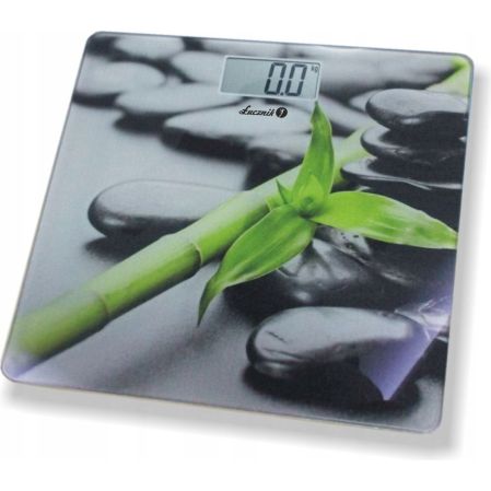Wyświetlacz LCD, malowana szklana platforma, zakres pomiaru 2,5-150 kg. Zasilanie: 1x bateria CR2032 (w zestawie).