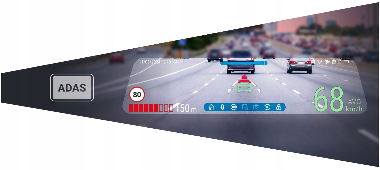 Kąt widzenia głównej kamery to 150°, a sensor optyczny SONY IMX335 oraz rozdzielczość 2K zapewniają znakomitą jakość nagrań o każdej porze dnia i nocy. W zestawie znajduje się kamera wsteczna nagrywająca w rozdzielczości Full HD, która po podłączeniu do wstecznej lampy pojazdu może służyć jako asystent parkowania.