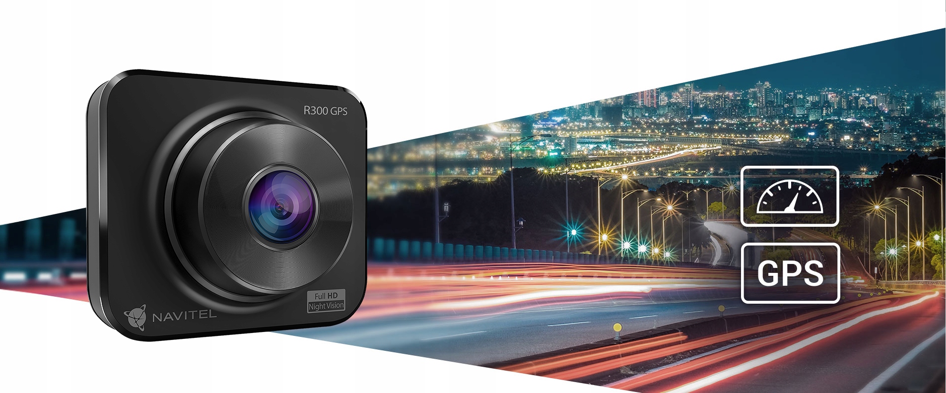 NAVITEL R300 GPS to kamera samochodowa, która skupia w sobie cechy wideorejestratora, cyfrowego prędkościomierza oraz informatora GPS.