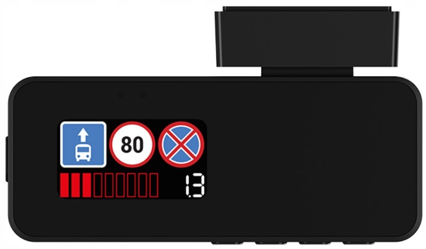 Ekran o przekątnej 1,47 cala umożliwia podgląd bieżącego nagrania i dostosowanie kąta nachylenia wideorejestratora. Dzięki modułowi GPS na ekranie wyświetlana jest także prędkość pojazdu oraz informacje o fotoradarach i innych zdarzeniach na drodze.