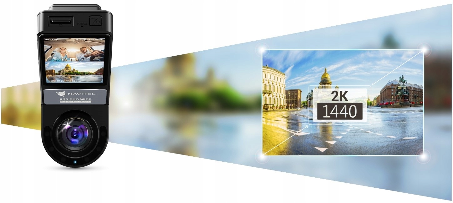 NAVITEL RS3 DUO WIDE ma dwa sensory GC4653 2K, które umożliwiają nagrywanie w rozdzielczości 2560x1440p. Dzięki sensorom obraz będzie wyraźny i czytelny nawet w nocy.