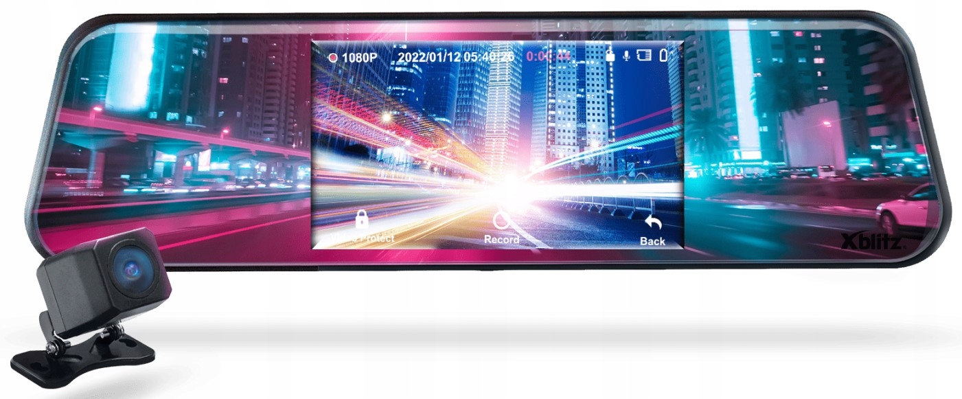 W zestawie z wideorejestratorem Xblitz Mirror HQ znajduje się również kamera cofania, która ułatwi Ci manewrowanie pojazdem w czasie parkowania.