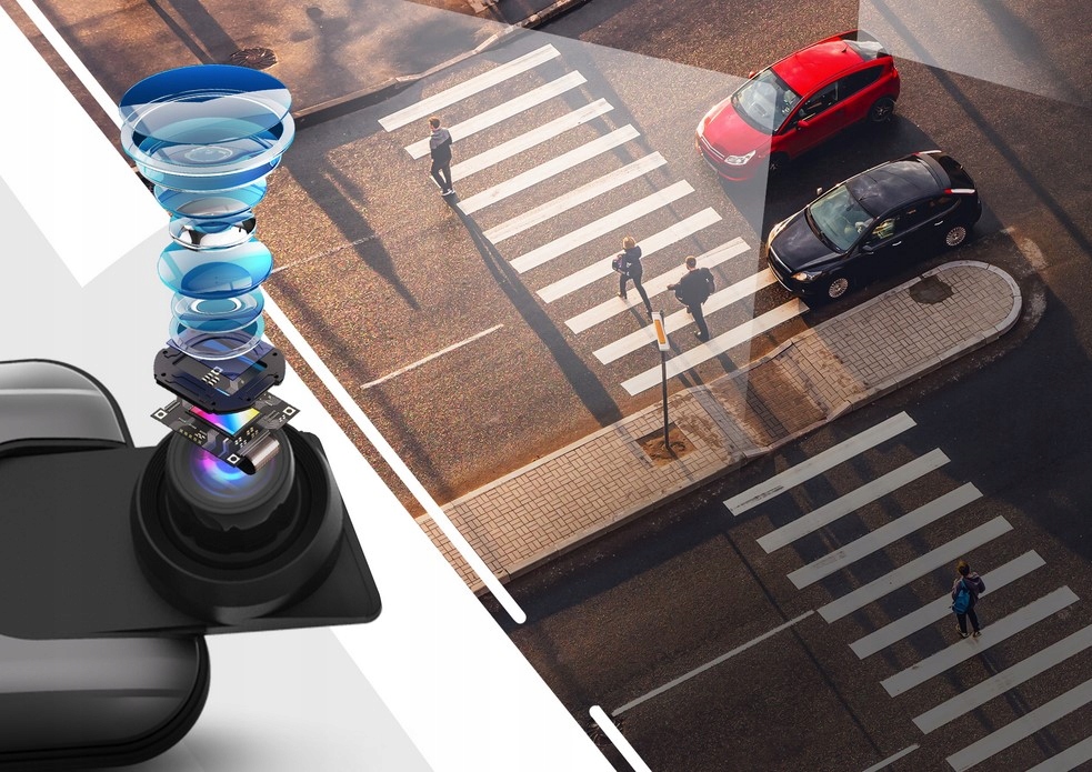 Wideorejestrator nagrywa obraz w zakresie 150 stopni z przodu i 120 stopni z tyłu, co pozwala na wygodną obserwację szerokiej przestrzeni przed, jak i za pojazdem.