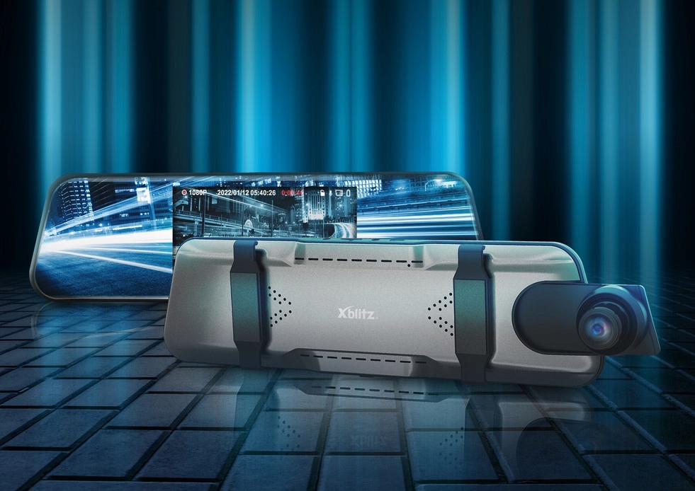 Wideorejestrator Xblitz Mirror HQ został wyposażony w wysuwany obiektyw — dzięki temu urządzenie w całości pokrywa fabryczne lusterko samochodowe i idealnie do niego przylega.
