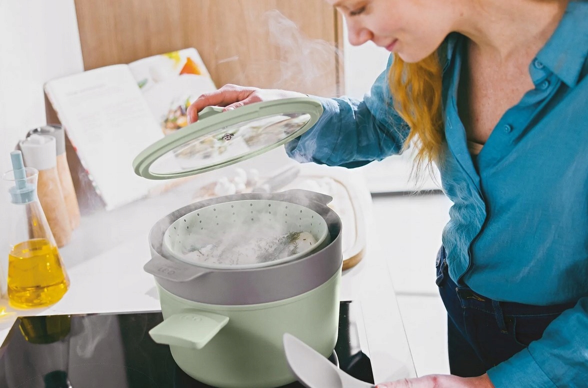 - Energooszczędne gotowanie wielopoziomowe: parowar w połączeniu z garnkiem