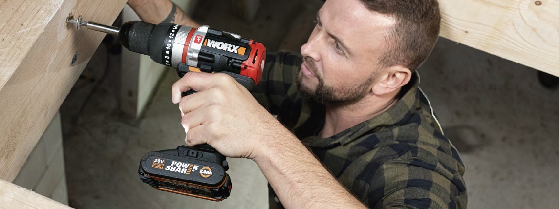 Dzięki WORX PowerShare możesz używać tej samej baterii do wszystkich bezprzewodowych narzędzi WORX: wiertarek, wkrętarek, kosiarek, pił, wyrzynarek i wielu innych.