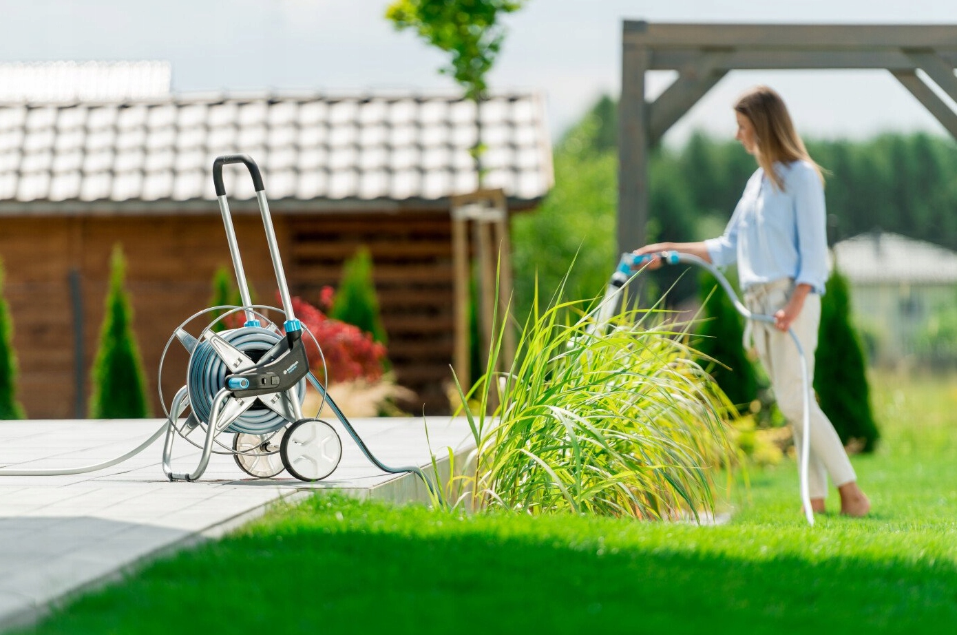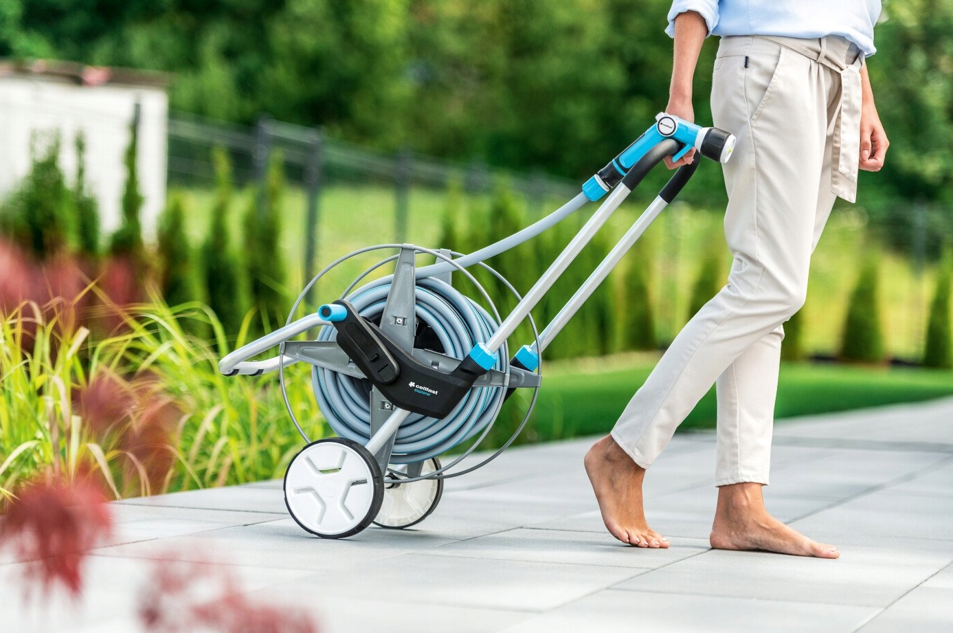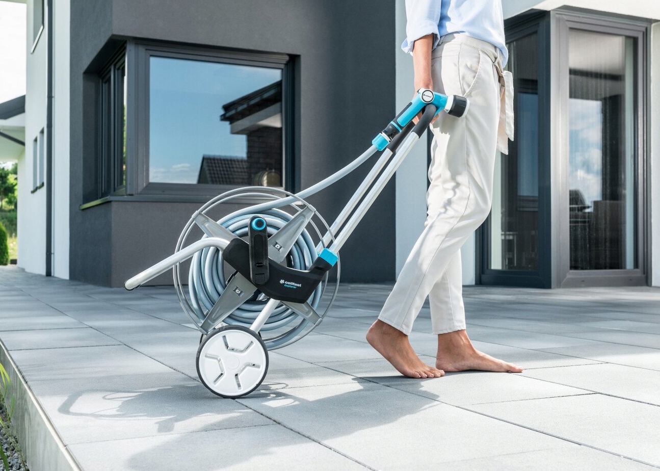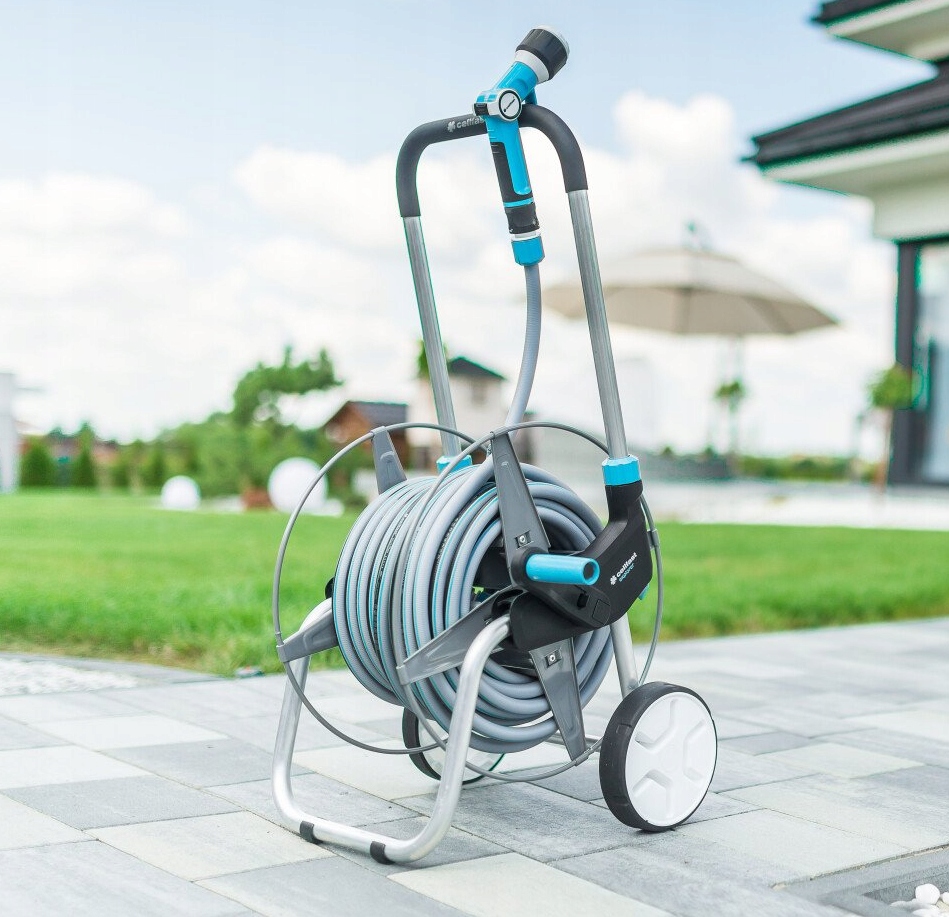 Konstrukcja wózka umożliwia wygodne przewożenie długich odcinków węża, co jest ogromnym udogodnieniem podczas prac wykonywanych w przydomowym ogrodzie. Pozwala tym samym zaoszczędzić czas pracy oraz odciążyć stawy i mięśnie użytkownika.
