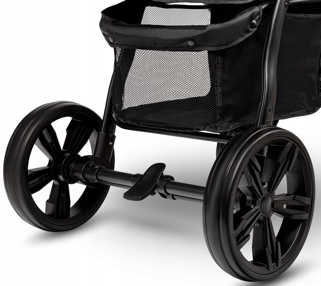 Płynne przejazdy w każdym terenie zapewniają bezobsługowe koła z pianki EVA. Mają one możliwość obrotu o 360°, co pozwoli Ci swobodnie manewrować wózkiem. Pełna amortyzacja podnosi komfort przejazdów po nierównościach, a przednia blokada kół wspomaga prowadzenie spacerówki w terenie. Centralny hamulec służy do bezpiecznego ustabilizowania spacerówki w czasie postoju.
