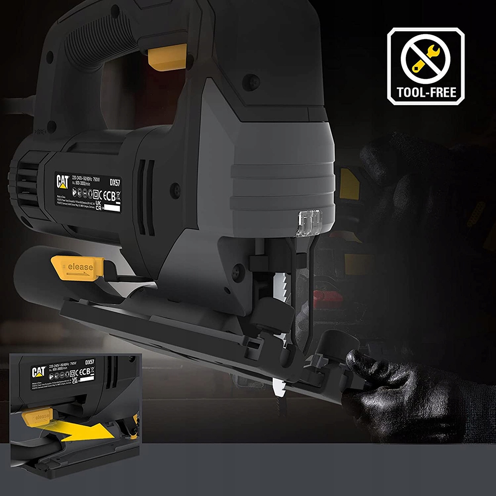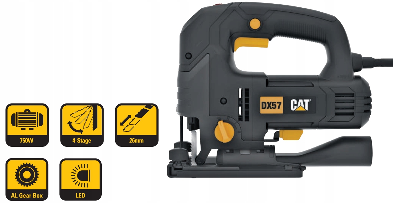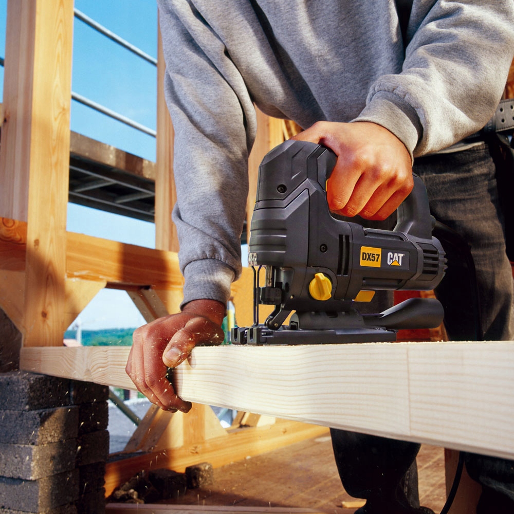Wyrzynarka elektryczna marki CAT DX57 o mocy 750W i maksymalnej głębokości cięcia drewna 100mm