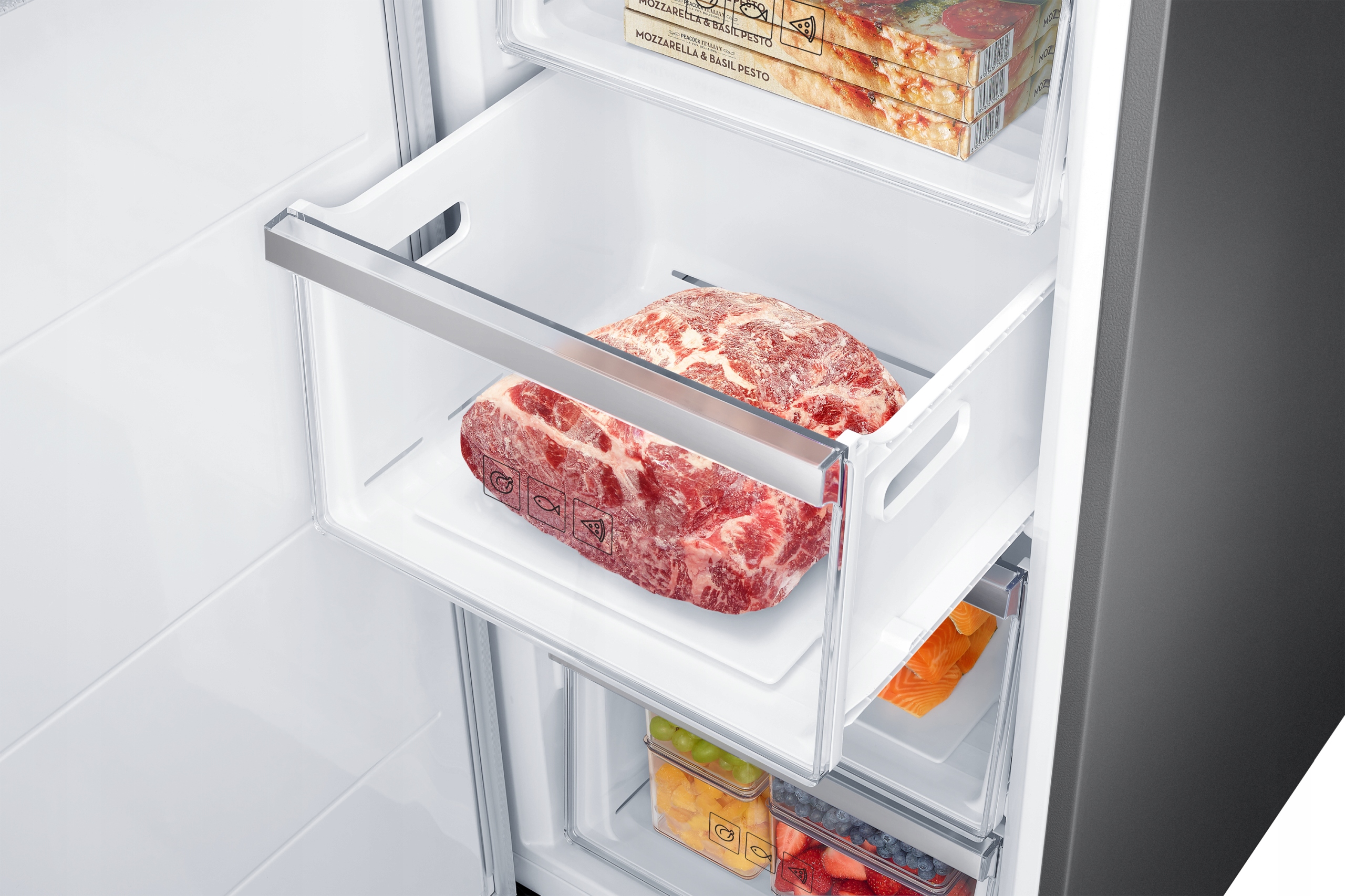 Ciesz się najwyższą elastycznością przechowywania. W prosty sposób możesz przekształcić zamrażarkę w lodówkę, kiedy chcesz, optymalizując wykorzystanie całej przestrzeni. Dzięki temu zawsze dostępne jest wystarczająco dużo miejsca, by przechowywać jeszcze większe ilości świeżego jedzenia, które wyjątkowo uwielbiasz lub które musisz przechowywać w różnych porach roku bądź na specjalne okazje.