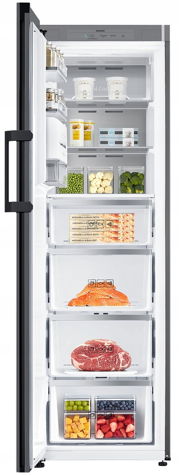 Bespoke, RZ32A748522, Zamrażarka Twin 1,85m, 323 l, Produkt kompletny - konstrukcja paneli umożliwiająca zmianę koloru i materiału w dowolnym momencie, W dowolnym momencie można dodać kolejny moduł, by przechowywać więcej produktów, All-Around Cooling - równomierne chłodzenie, Metal Cooling – metalowy panel, utrzymuje stabilną temperaturę, Convertible Zone