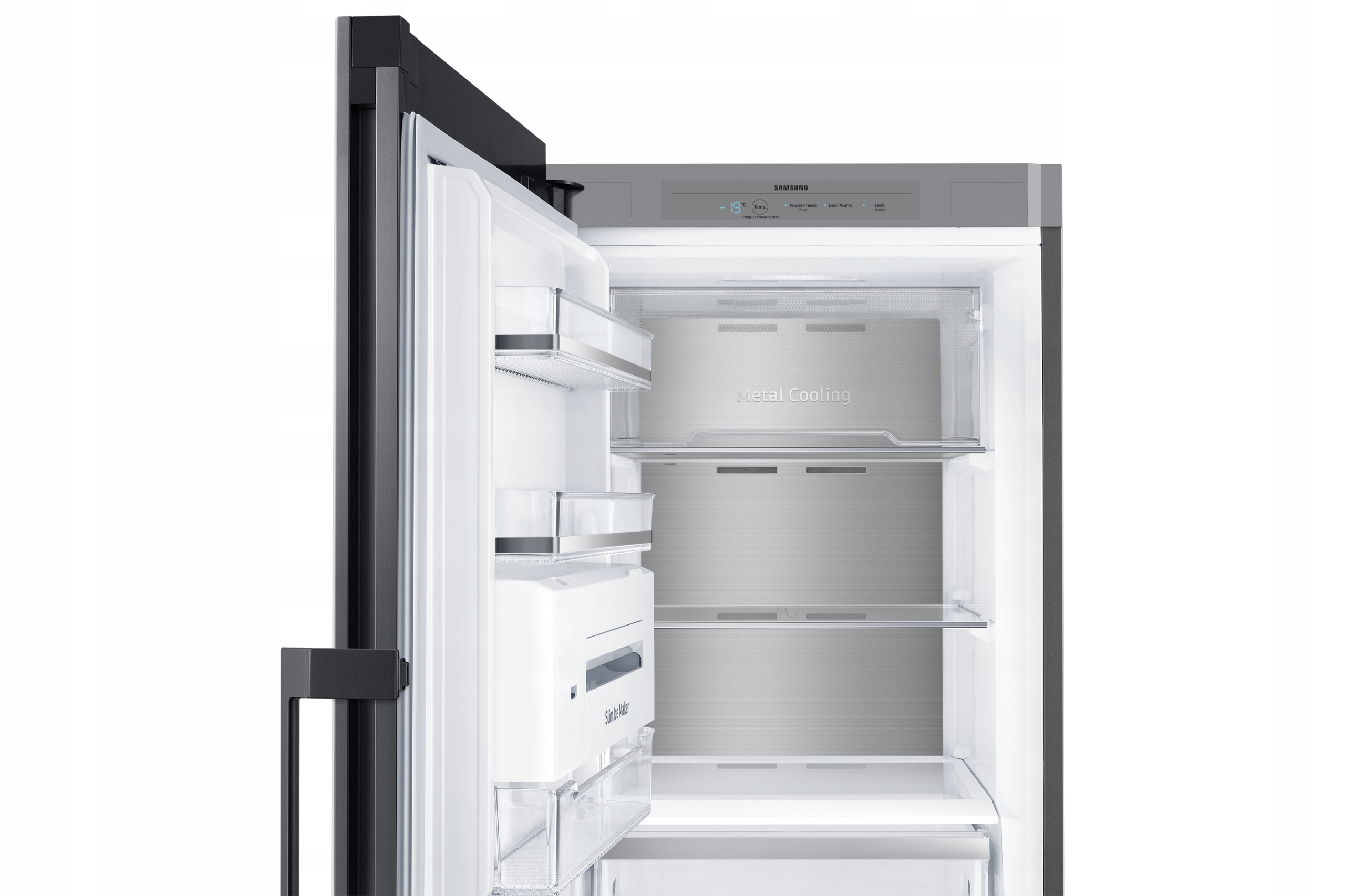 Zmróź swoje jedzenie lub błyskawicznie zrób lód. Po naciśnięciu przycisku, funkcja Power Freeze automatycznie ustawia temperaturę mrożenia na najniższy poziom i tworzy szybki podmuch intensywnie zimnego powietrza. Świetnie nadaje się do mrożenia lub utwardzania mrożonej żywności takiej, jak choćby lody, a także do szybkiego robienia lodu.