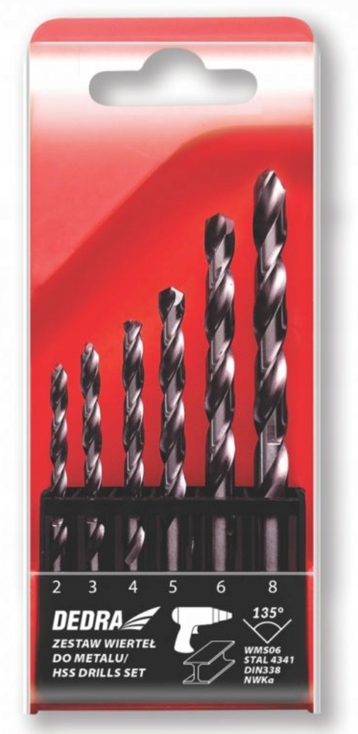Zestaw 6 wierteł do metalu DEDRA 2,3,4,5,6,8 mm