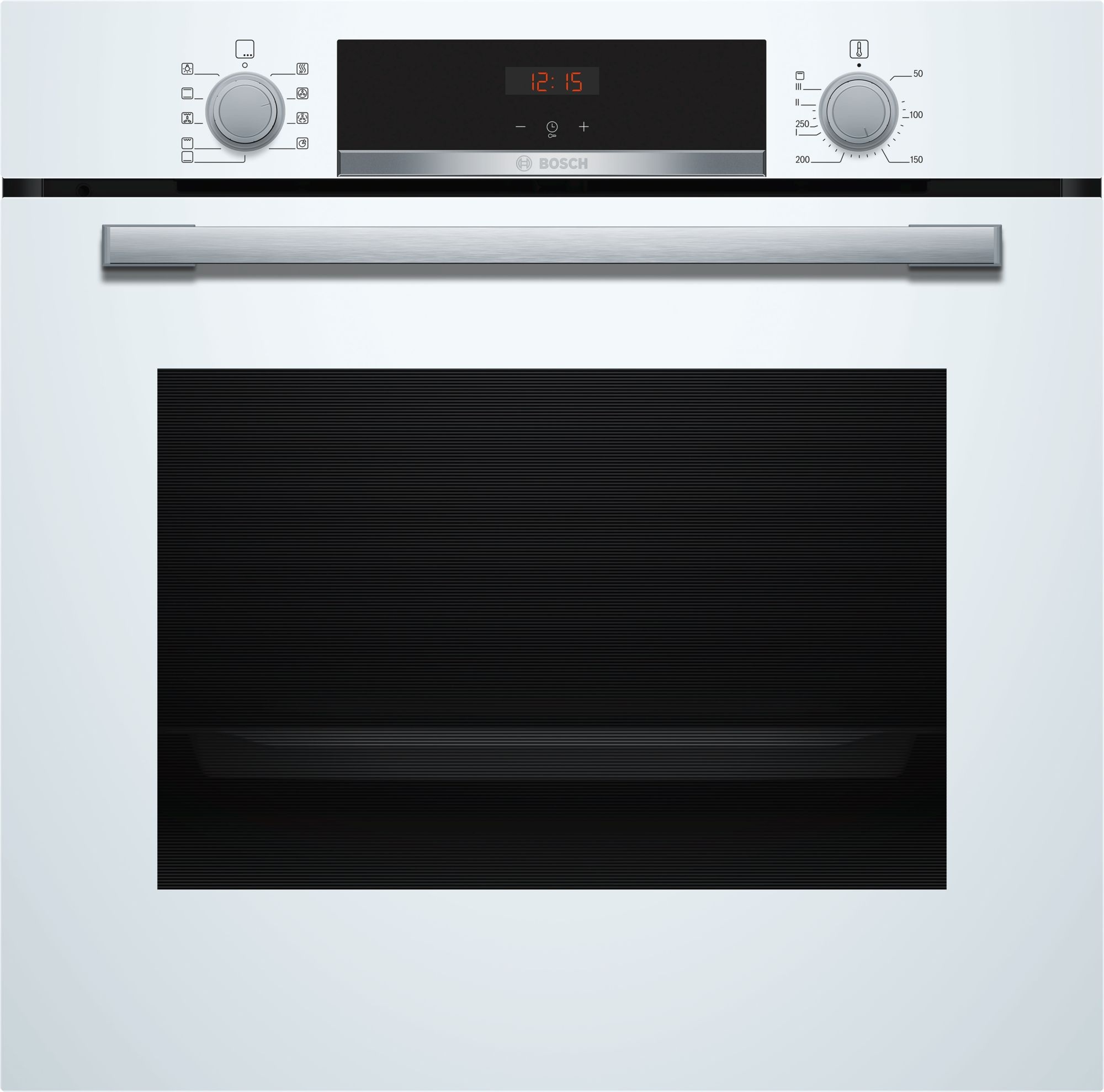 Zestaw do zabudowy marki Bosch w kolorze białym: Piekarnik HBA 534BW0 oraz Płyta indukcyjna PIF 672FB1E