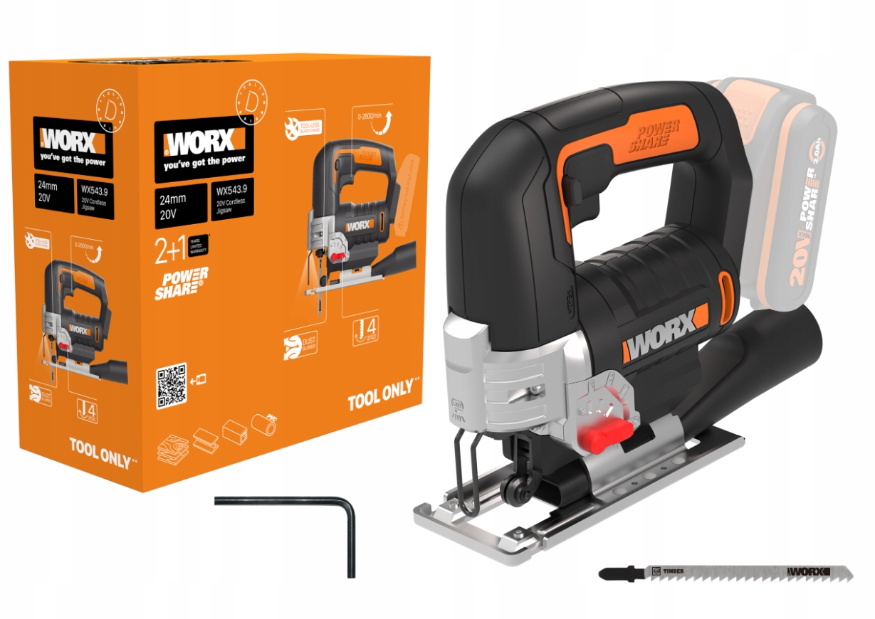 - Wyrzynarka akumulatorowa WORX WX543.9 80mm 20V
