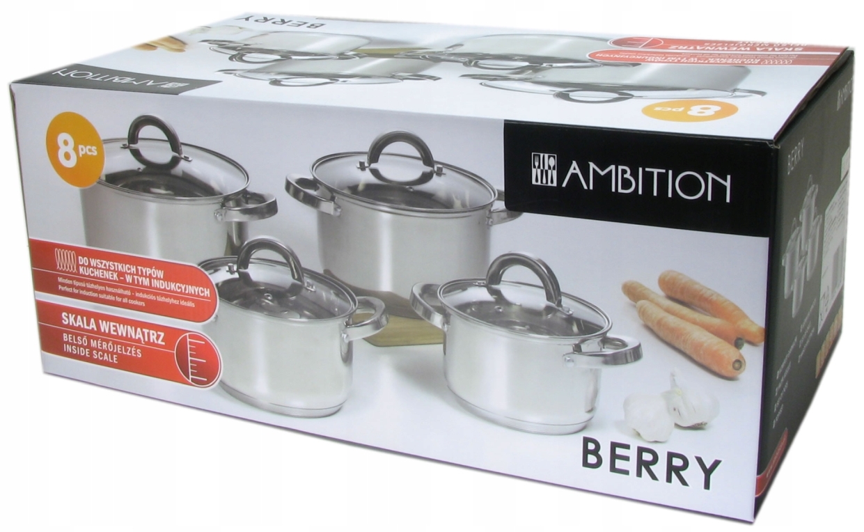 Zestaw garnków Ambition Berry 8 el. Stal nierdzewna Indukcja Grube dno