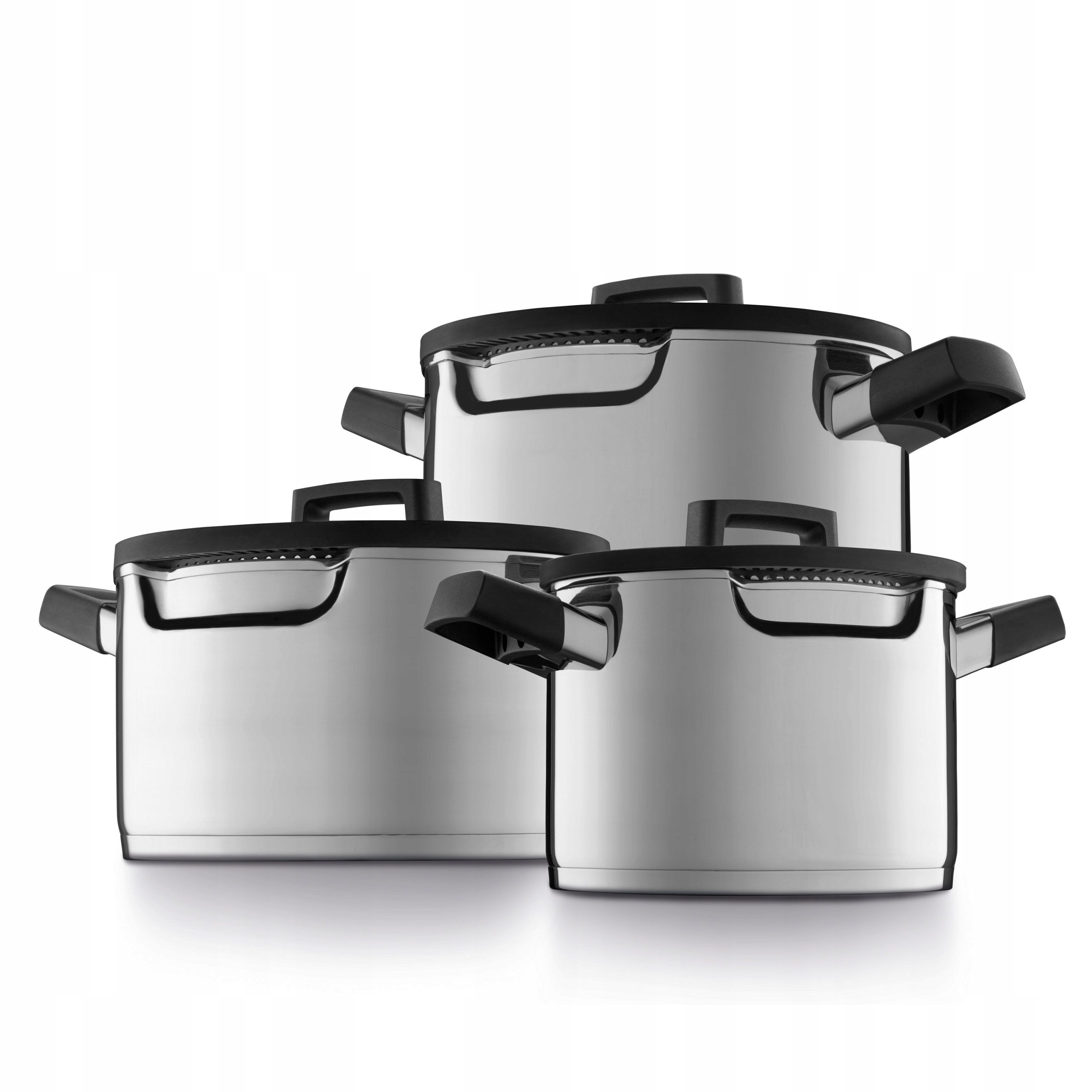 Ten 6-elementowy zestaw zawiera odpowiednie garnki do każdego wyzwania kulinarnego. Szklane pokrywki posiadają wbudowane kanały odprowadzające parę, które z łatwością można zamknąć poprzez obrócenie pokrywki o 180 stopni. Produkty kuchenne z systemem dolnego odprowadzenia pary BergHOFF nadają się do wszystkich płyt kuchennych, okapów i pochłaniaczy blatowych.