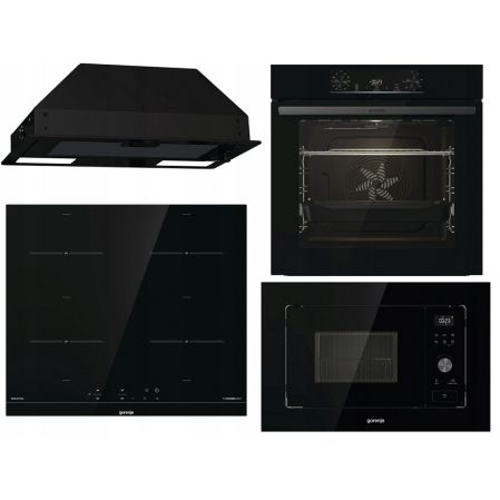 Zestaw Gorenje zawiera Piekarnik elektryczny Gorenje BO6735E05B + Płyta indukcyjna Gorenje IT64ASC + Kuchenka mikrofalowa Gorenje BM201AG1BG + Okap podszafkowy Gorenje BHI681EB