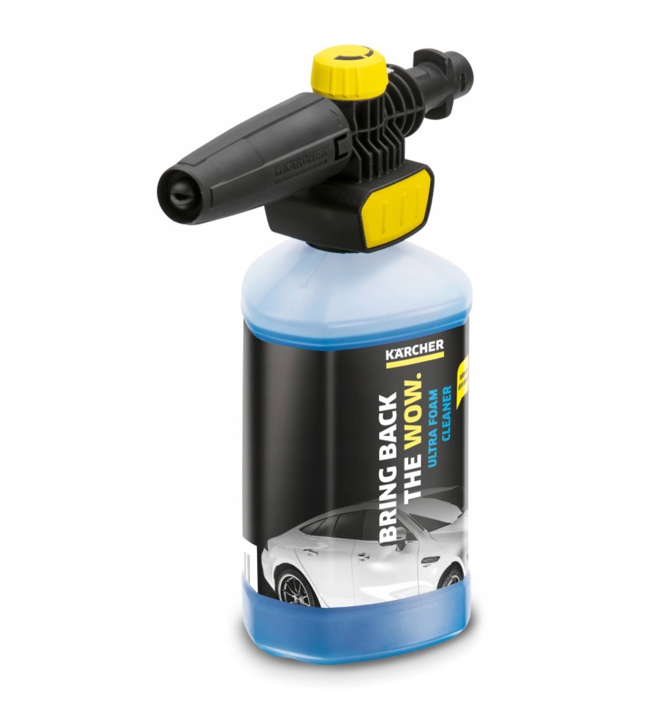 Lanca pianowa FJ 10 C Connect 'n' Clean ze środkiem czyszczącym Ultra Foam. System szybkiej zmiany do nanoszenia detergentu umożliwia błyskawiczną zmianę między różnymi detergentami za jednym kliknięciem. Dawkę detergentu można z łatwością regulować na dyszy pianowej (żółte pokrętło). Poziom strumienia można regulować według wymagań. Pasuje do wszystkich myjek ciśnieniowych w klasach K 2 do K 7.