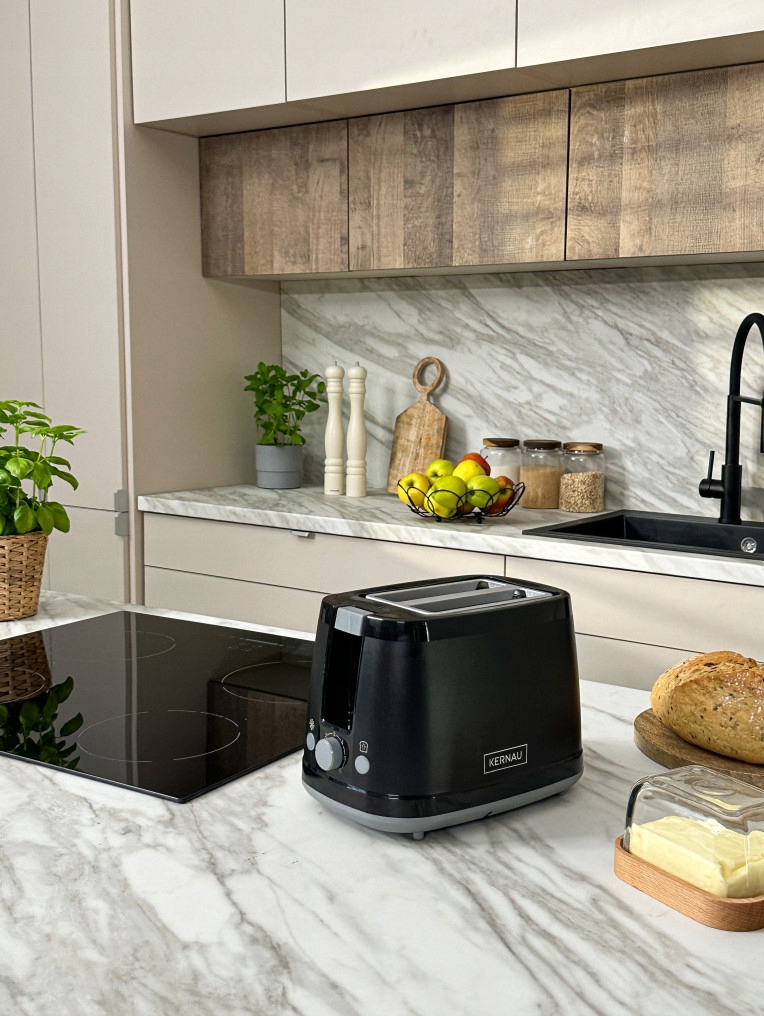 Idealny poranek z tostami przygotowanymi w KST 871 Bk rozpoczyna się od chwili spokoju, gdy pierwsze promienie słońca delikatnie oświetlają kuchnię. Z łatwością umieszczasz kromki chleba w szerokich otworach tostera Kernau. Wybierasz jeden z 7 stopni mocy, dostosowując urządzenie do swojej preferencji zarumienienia – czy to lekko złociste, czy intensywnie chrupiące brzegi. Dzięki niezawodnej regulowanej kontroli brązowienia każdy tost jest dokładnie taki, jak lubisz.