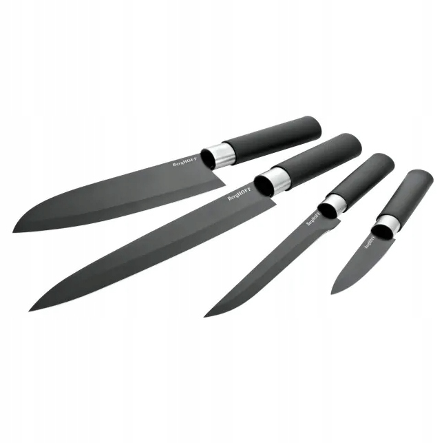 Każdy nóż posiada wysokiej jakości ostrze ze stali nierdzewnej z ceramiczną powłoką nieprzywierającą, która zapewnia gładkie cięcie bez przyklejania się jedzenia do ostrza. Polipropylenowe uchwyty noży zapewniają pewny chwyt podczas krojenia, filetowania lub