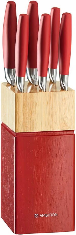 Zestaw noży w drewnianym bloku Ambition Ombre 6 noży w bloku czerwony
