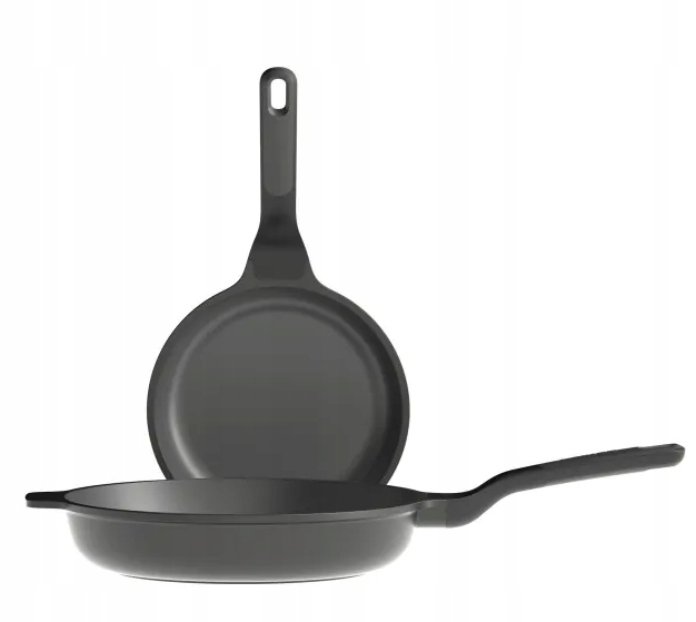 Zestaw dwóch patelni w rozmiarach 24 cm i 28 cm idealnie sprawdzi się do przygotowania porannego śniadania lub wieczornej kolacji. Korpus z odlewanego aluminium, pochodzącego z recyklingu, zapewnia doskonałe i równomierne rozprowadzanie ciepła.