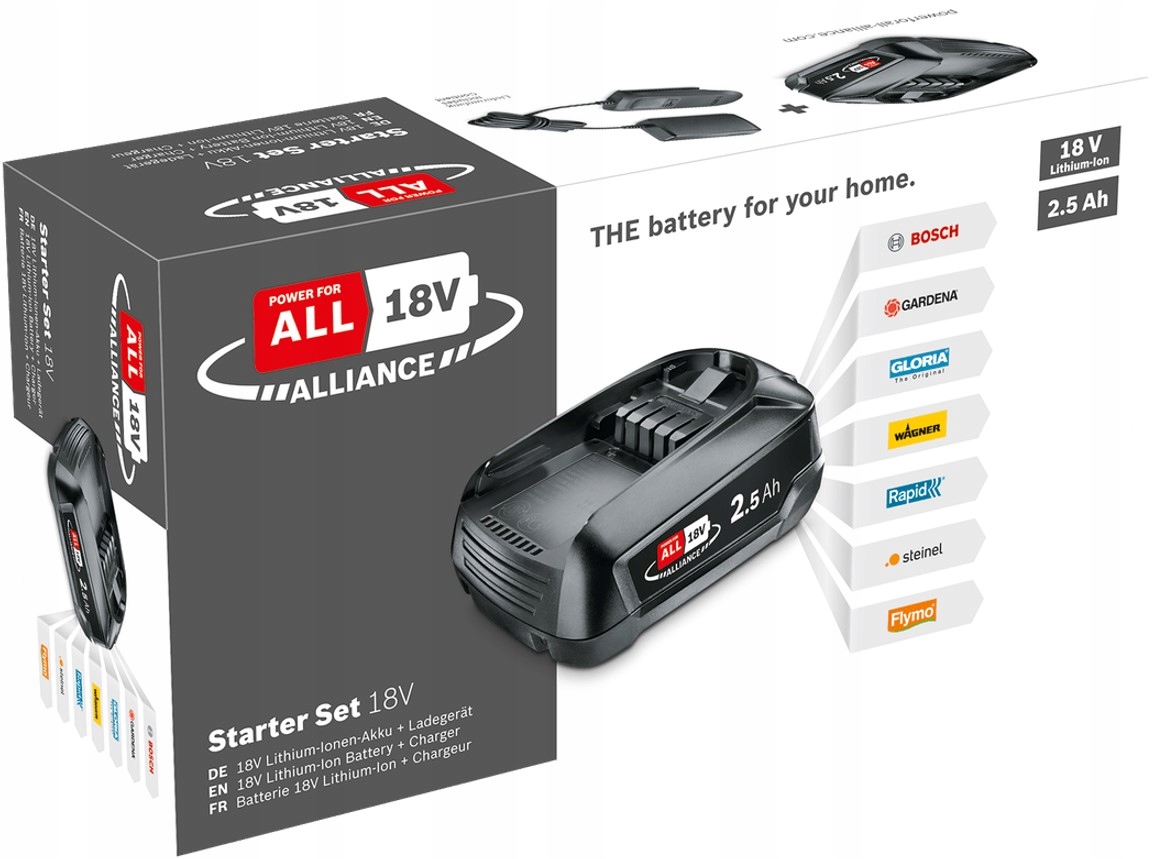 Zestaw Bosch Starter Set 18V Alliance. 1 akumulator PBA 18V 2.5Ah. Ładowarka AL 18V-20.