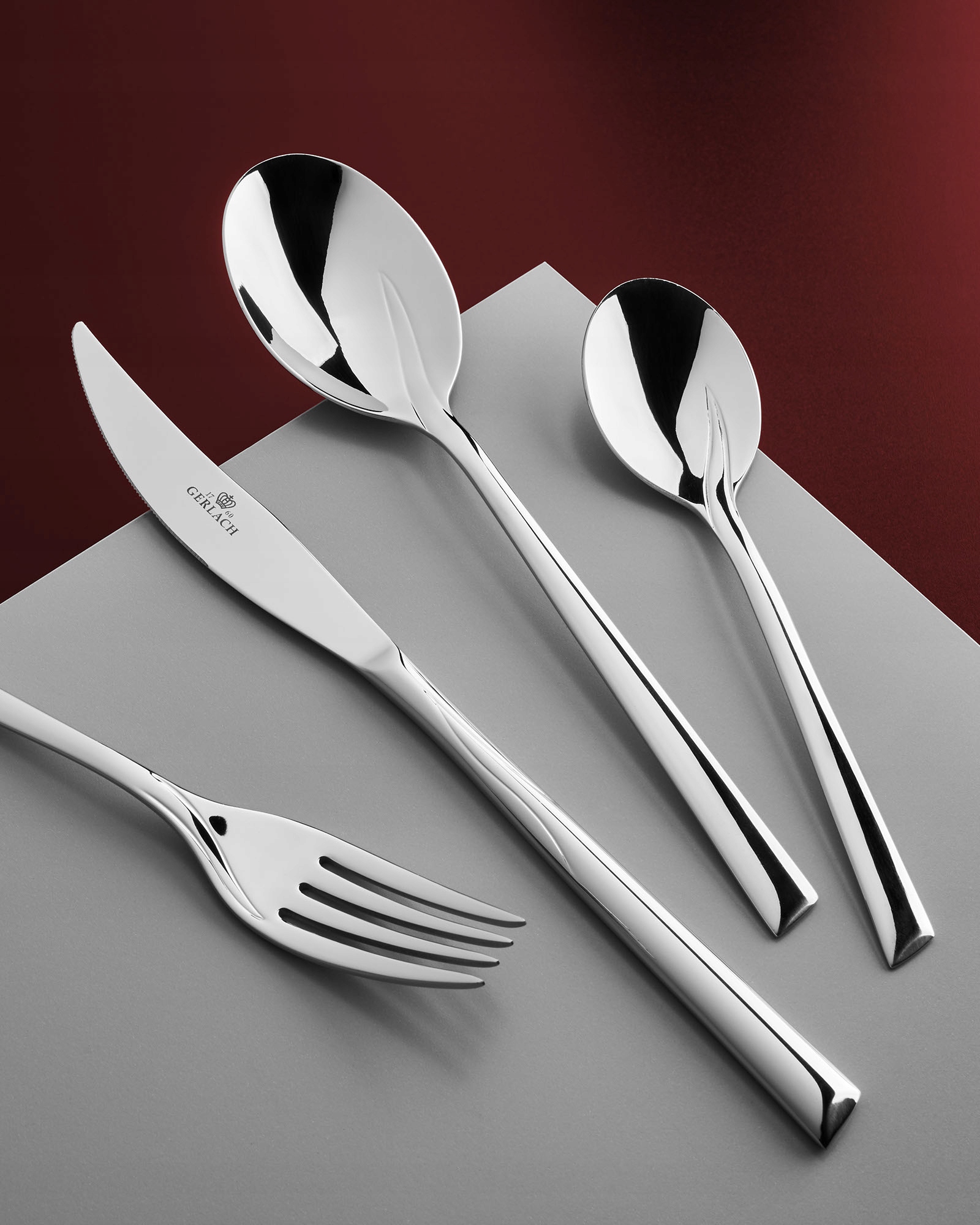 Zestaw sztućców 24 szt. Flames to fantastyczny wybór dla poszukujących nietypowych rozwiązań w designie przedmiotów codziennego użytku. Charakterystycznym elementem tej linii jest odważny, a jednocześnie delikatny grawer przypominający płomień. Te nowoczesne sztućce będą doskonałym towarzyszem podczas popołudniowego spotkania przy herbacie, jak i odświętnych oraz niezapomnianych momentach przy stole. Linia została wyróżniona nagrodą Dobry Wzór 1995.